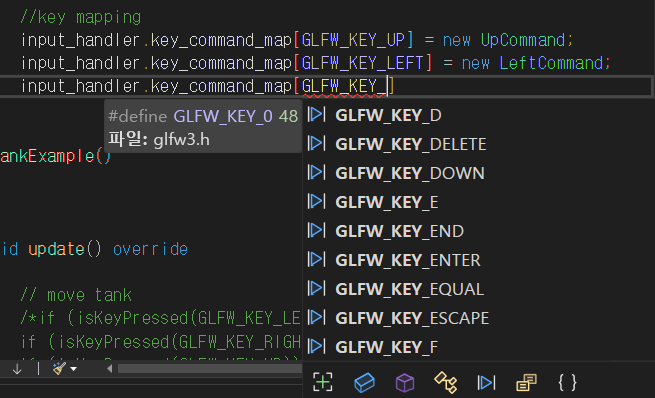 키보드 입력 또한 update()에서 안받게 따로 추상화하여 뺐다.