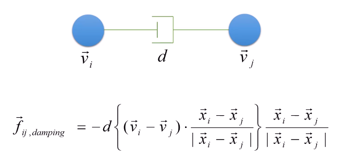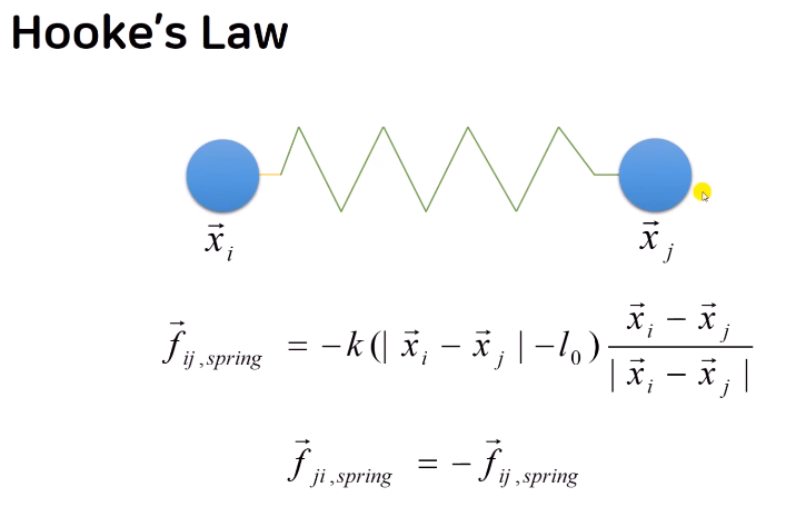 F_ij,spring과 F_ij,damping을 더한 힘으로 고정되지 않은 공(자유낙하 하고 있는 공)을 스프링 힘에 의해 원래 위치로 돌아가게끔 만들기
