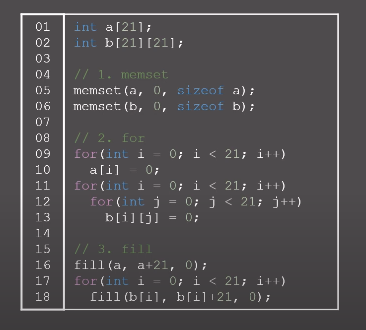 전체를 특정 값으로 초기화 시킬때 어떤 방법이 제일 효율적인가