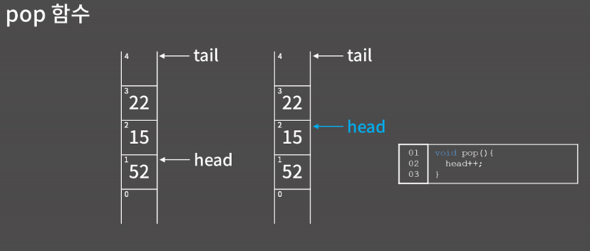 값을 제거하면 head가 한 칸 올라가가고 tail은 변함이 없다.
