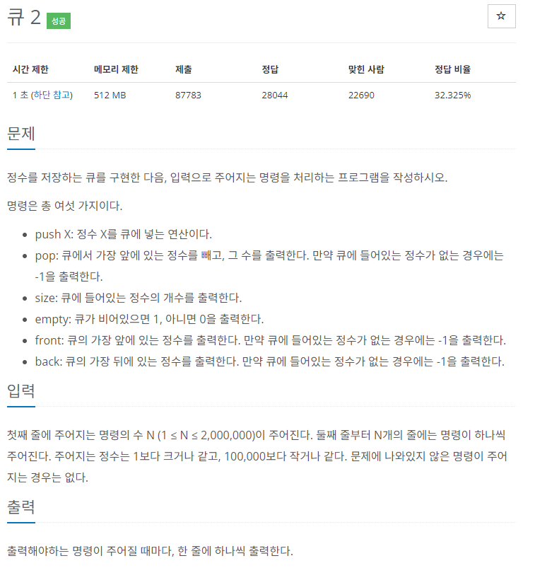 하지만 우리가 연결 리스트에서 생각한 것과 비슷하게, 코딩테스트에서는 어차피 push의 최대 횟수가 정해져 있다. 그러면 배열의 크기를 push의 최대 횟수보다 크게 둬서 굳이 원형 큐를 만들지 않아도 되게끔 할 수 있다.
