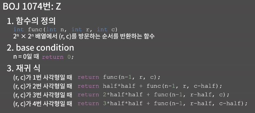 (2^2)*(2^2)*2.. 이런 식으로 계속해서 재귀적으로 반으로 나눠갈 수 있다.