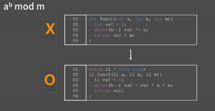 자료형을 넘지 않도록 지수를 분할하여 곱하여야 한다.