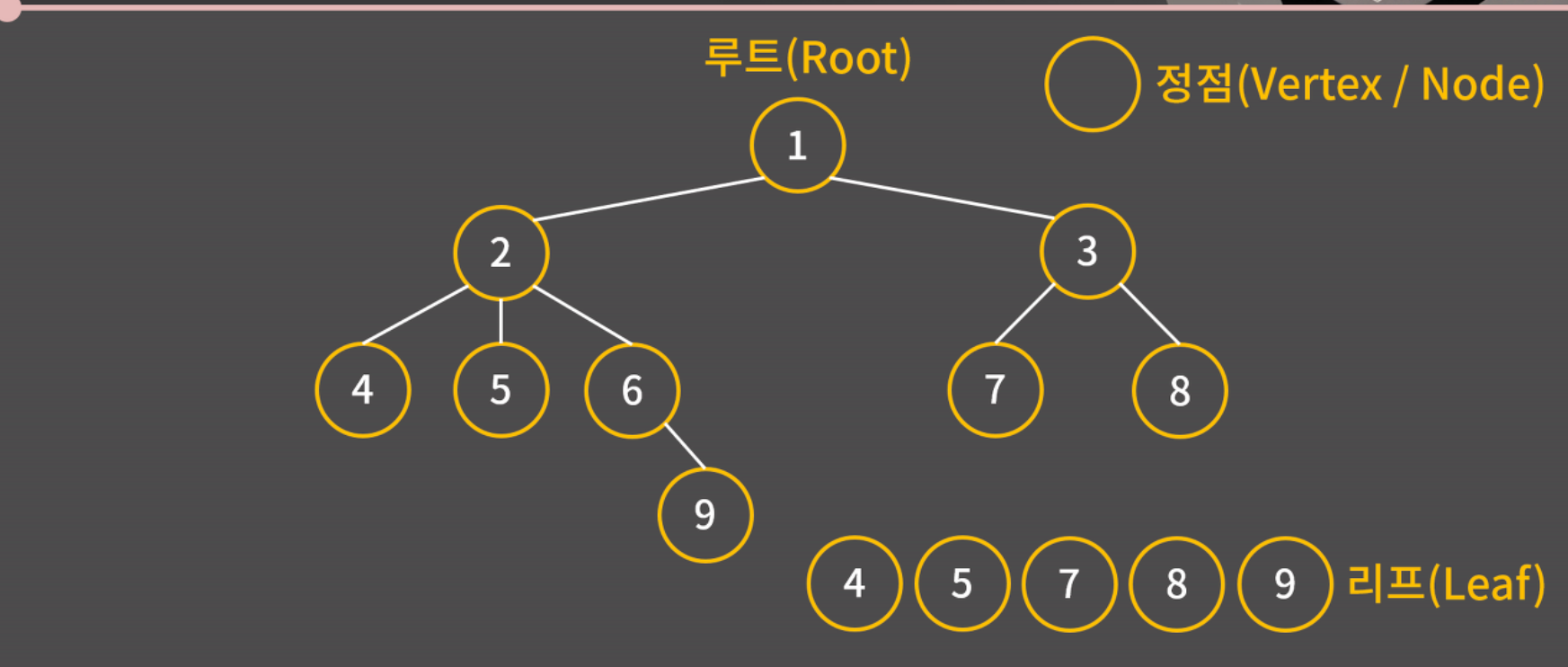 - 제일 말단에서 아래로 뻗은게 없는 정점을 리프(Leaf)라고 부름