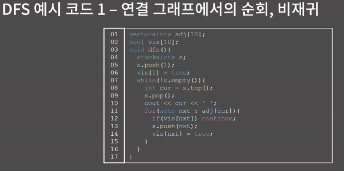 // 비재귀 DFS