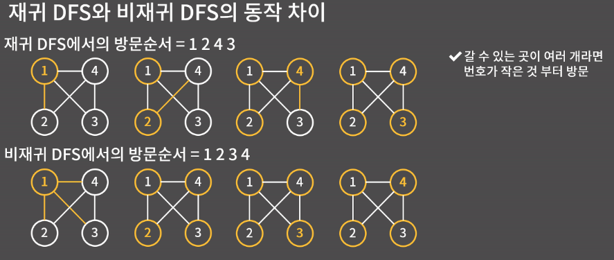 BFS과정에서 큐만 스택으로 바꾸면 DFS 과정이 된다.