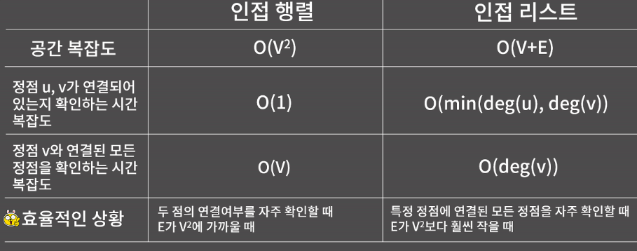 BFS, DFS나 여러 경로 알고리즘들에서는 전부 특정 정점에 연결된 모든 정점을 확인하는 작업이 반복적으로 등장하게된다. 그렇기 때문에 앞으로 인접 행렬 보다는 인접 리스트로 그래프를 나타낼 상황이 훨씬 많다.