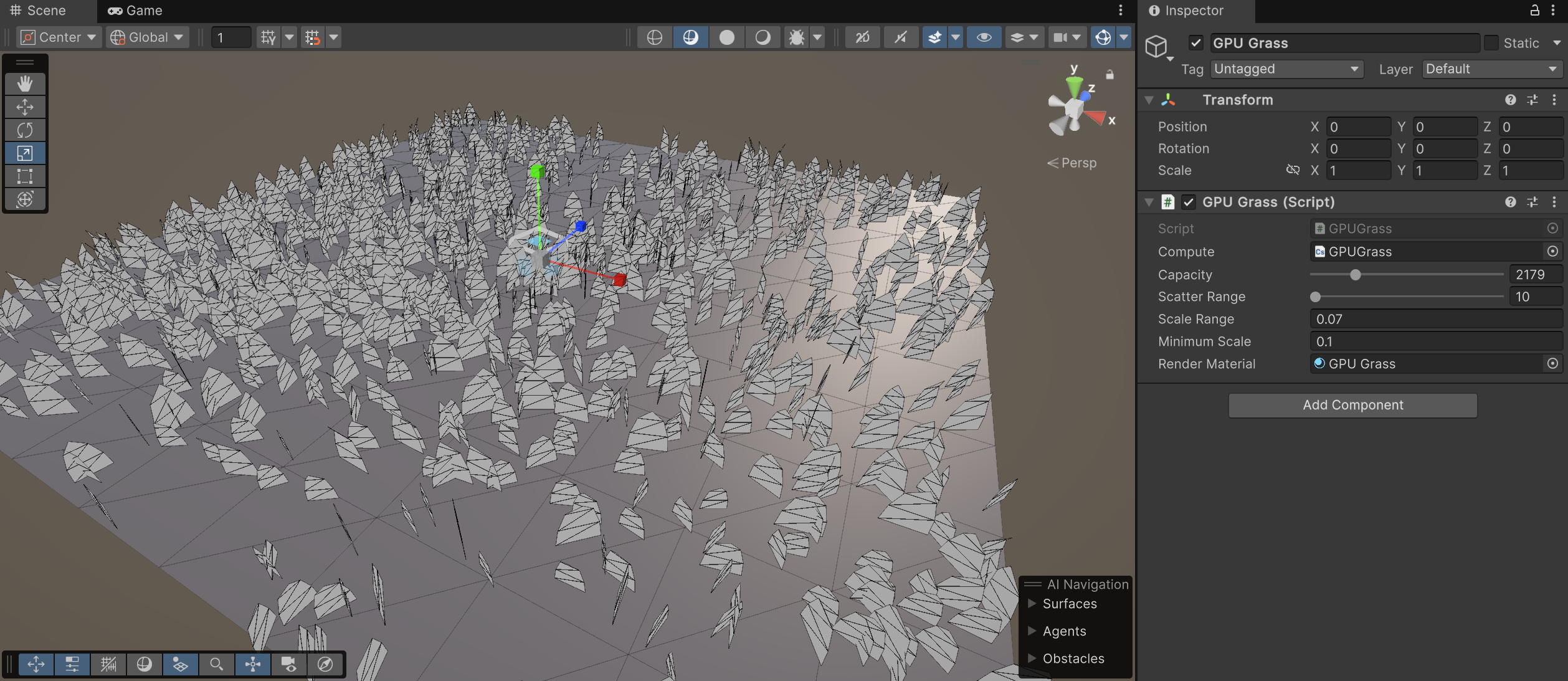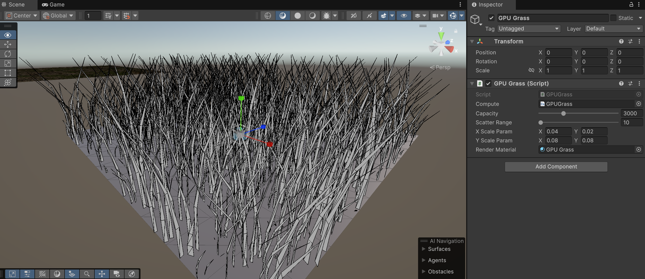 가로 세로 길이를 자유롭게 조절하여 원하는 크기의 풀을 만들기 위해, 기존의 있던 scaleRange와 MinimumScale을 합쳐서 float2 타입의 xScaleParm과 yScaleParm으로 구분하도록 수정하였다.